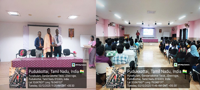 Department of chemistry organized a Guest Lecture on “Sustainable Nutrition Healthy Food Choices for Healthy Planet” on 02.12.25. Resource Person Dr.N.Baskaran, Assistant Professor, Department of Food Safety and Quality Assurance, National Institute of Food Technology Entrepreneurship and Management, Thanjavur.