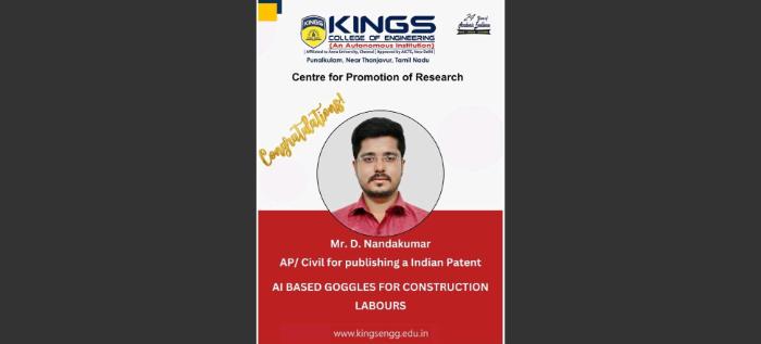 Our Faculty Member Mr. D. Nandakumar Published a patent for a product.