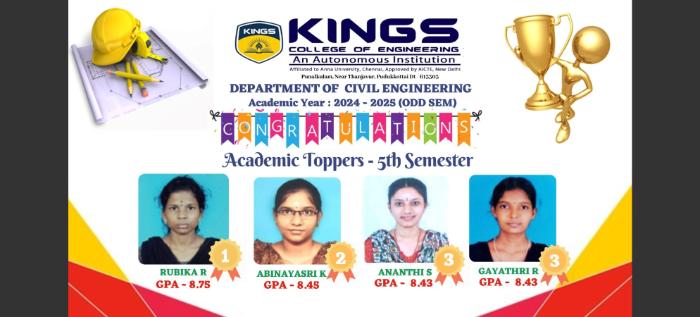 The Civil Engineering department boasts a dedicated team of experienced faculty members in their respective fields. Supported by highly qualified staff with diverse specializations, the department ensures a well-rounded educational experience. Our faculty members have made significant contributions to research, with numerous publications in renowned journals indexed by Google Scholar, Scopus, and Web of Science. This active involvement in cutting-edge research not only enriches the academic environment but also inspires students to pursue innovation. The department is committed to shaping future engineers who are equipped with both practical skills and a deep understanding of the dynamic field of civil engineering. |