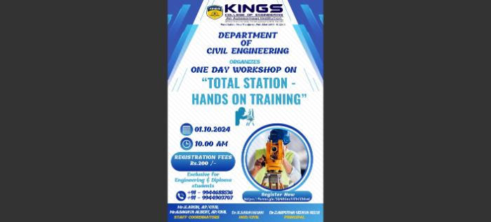 One Day Workshop on “Total Station – Hands on Training” conducted in the Academic Year 2024-2025