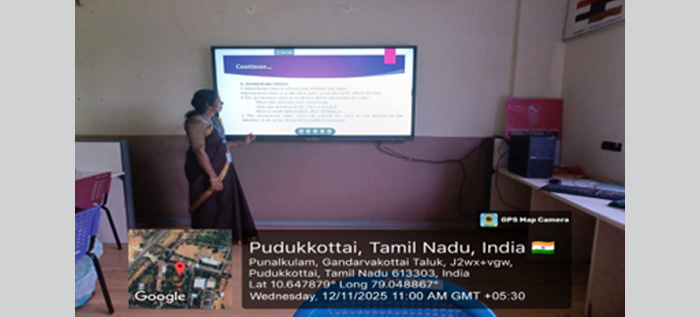 - Dr. K. Abhirami, Ms. J. Lavanya presented a paper titled “AI-Driven Fire Hazard Prediction and Decision Support System for Flood and Fire Management” at the 2nd International Conference on Global Trends in Engineering and Technological Advancement, organized by Gojan School of Business and Technology, Chennai on 25.10.2025.