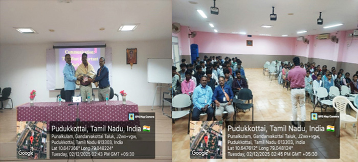 Department of English organized a Guest Lecture on “Communication: The Most Important Sof Skill” on 02.12.25. Resource person Mr. M.Prabhakaran Assistant Professor & Head Department of English K.Ramakrishnan College of Technology (Autonomous) Samayapuram Tiruchirppalli.
